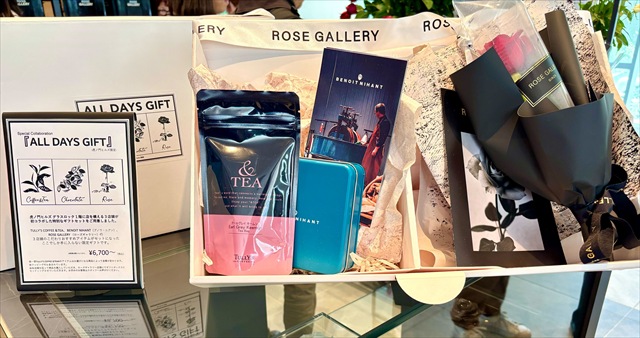 「ALL DAYS GIFT」は、3店舗の商品が入った特別なギフトセット。セットになっている商品を基本に、4つ、5つとBOXに入る限り商品を中に入れることができます。各店舗を回って商品を購入し、「ROSE GALLERY」に持っていくとギフトボックスにまとめてくれますよ。