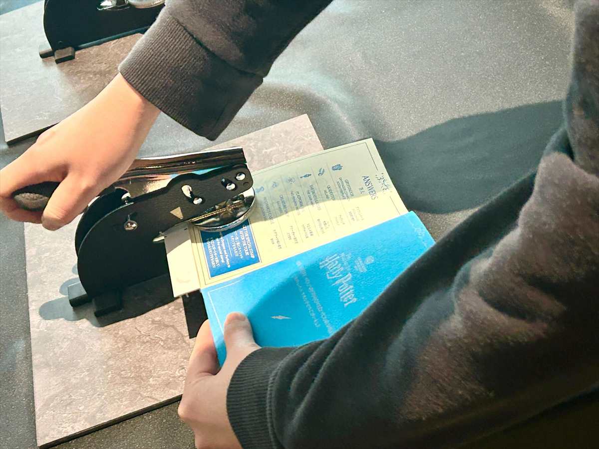 展示を見終えたあとにパスポートセンターへ戻ると、「エンボススタンプ」を押すことができます! キャストさんにサポートしてもらいながら、自分の手で押せるのも嬉しいポイントです。もしミニチュアモチーフを見つけられなかった場合でも、パスポートセンターに行けばスタンプを押すことができるので、ぜひ最後に立ち寄ってみてください。どんなスタンプかは、押してからのお楽しみです!