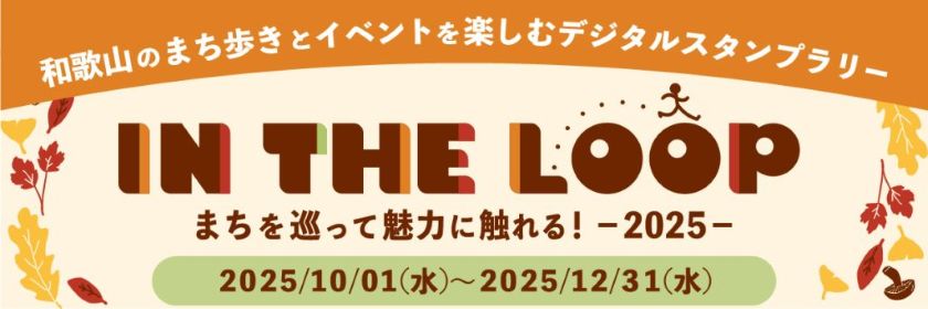 JR和歌山駅や和歌山市駅周辺のまちなかエリアを舞台に、多彩なイベントが楽しめる回遊型フェス「IN THE LOOP 2025」が、2025年10月1日(水)〜11月30日(日)に開催! さまざまなイベントを巡ると景品が当たる「デジタルスタンプラリー」や、地元ガイドと一緒に和歌山市の日常に触れる「まち歩きツアー」などが実施されます。10月4日(土)には人気イベント「第8回 わかやまの酒フェスタ 地酒BOMBER」も開催。イベント会場だけにとどまらず、和歌山のまち全体がまるごと賑わいに包まれます!