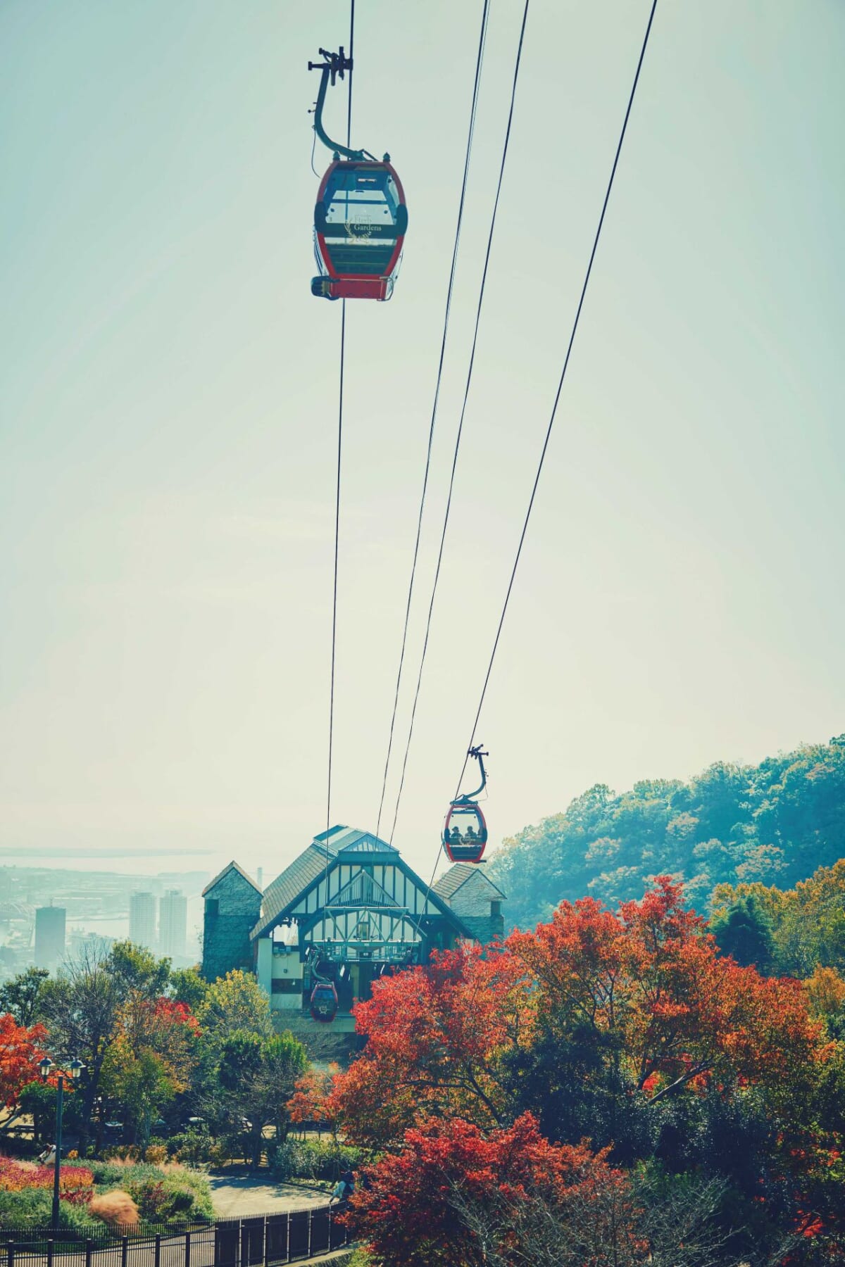 ロープウェイや展望プラザ(標高約400m)、ガーデンの各所、風の丘芝生広場(標高約250m)にて、紅葉越しに美しい神戸の街並みが望めるのも神戸布引ハーブ園ならでは。さらに、神戸布引ハーブ園では、紅葉と同時に可憐なハーブや花々も観賞することができます。