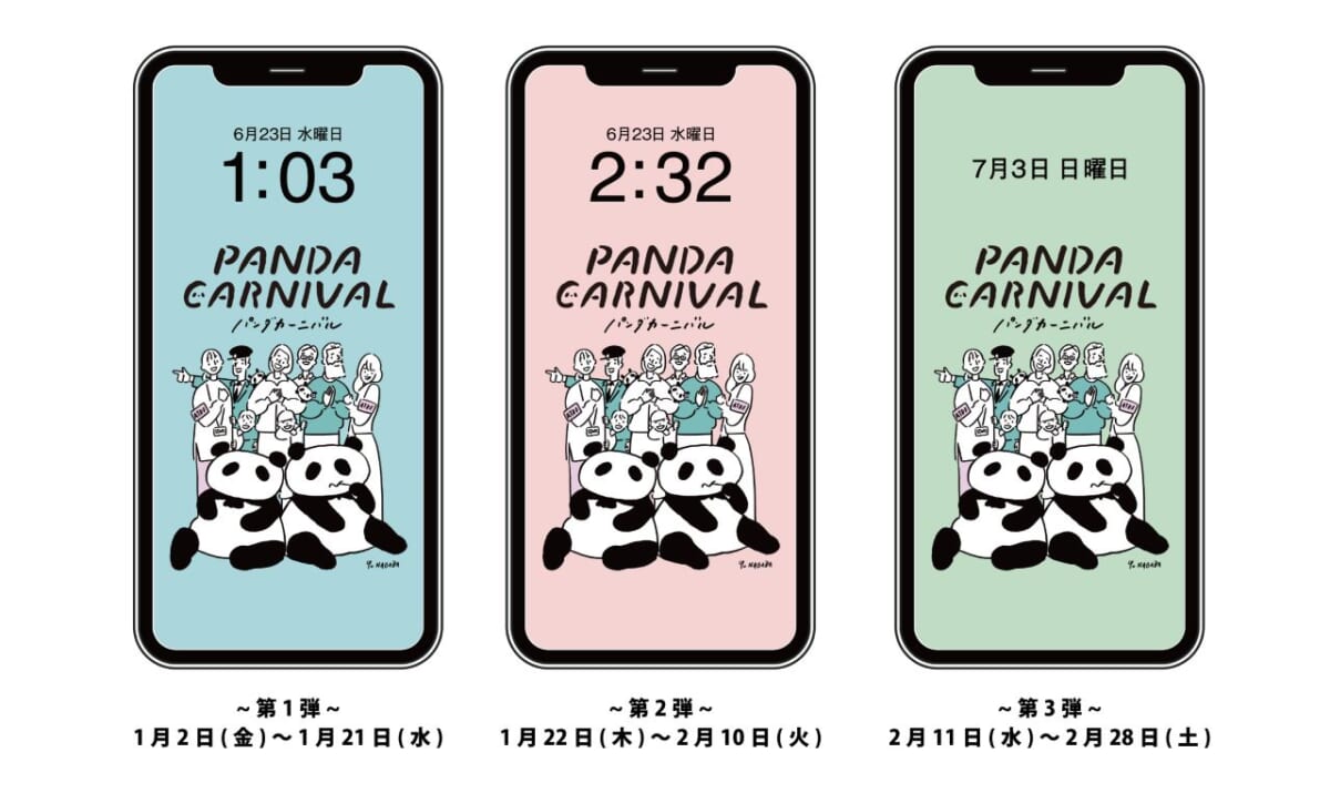 イベント期間中、アトレ公式LINEの友だち全員に、オリジナル壁紙をプレゼント。アトレ公式LINEのトーク画面にキーワード『パンダカーニバル』を入力すると壁紙がもらえます。壁紙は全3種類。期間ごとにもらえる壁紙が異なりますので、それぞれゲットしてくださいね。