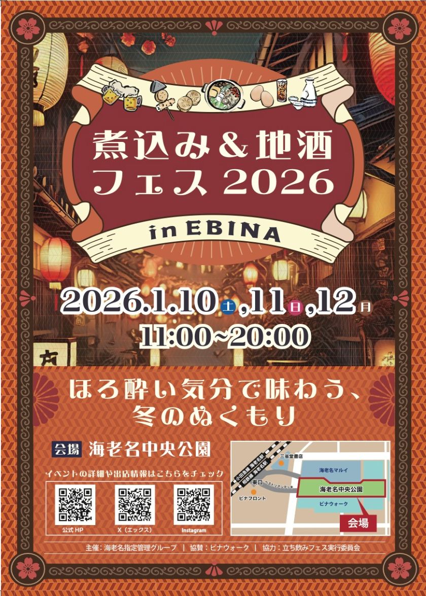 「煮込み&地酒フェス2026 in EBINA」は、“全国各地のご当地おでんや煮込み料理をつまみにお酒を楽しもう!”をテーマに全30ブースが出店し、海老名中央公園で初開催!