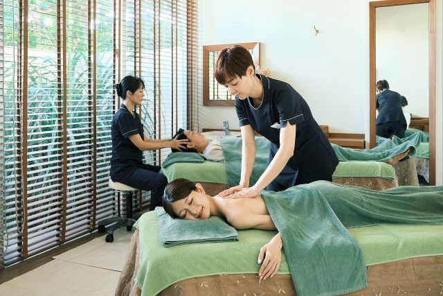 滞在中は、スパ・サウナ・岩盤浴がフリーパスで何度でも利用可能。特に岩盤浴は、EMセラミックスやブラックシリカなどの特殊鉱石を使用しているため、遠赤外線効果で身体の芯まで温めてくれます。