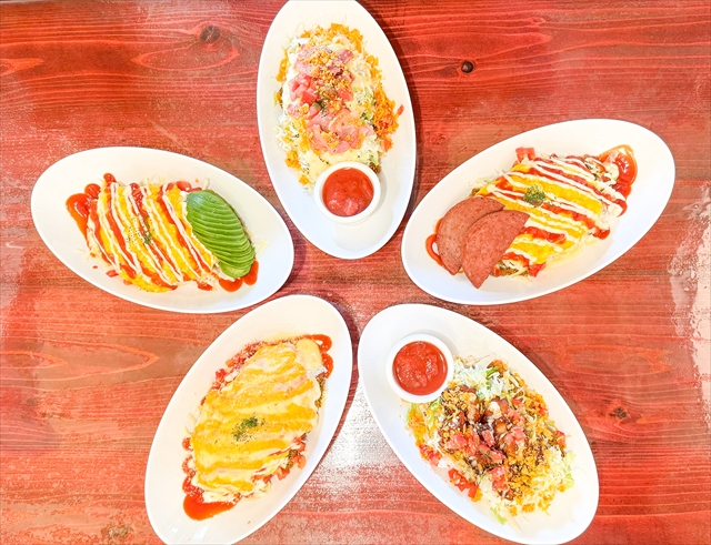 名物“オムタコ”を中心に4種のミート&自由自在のトッピング