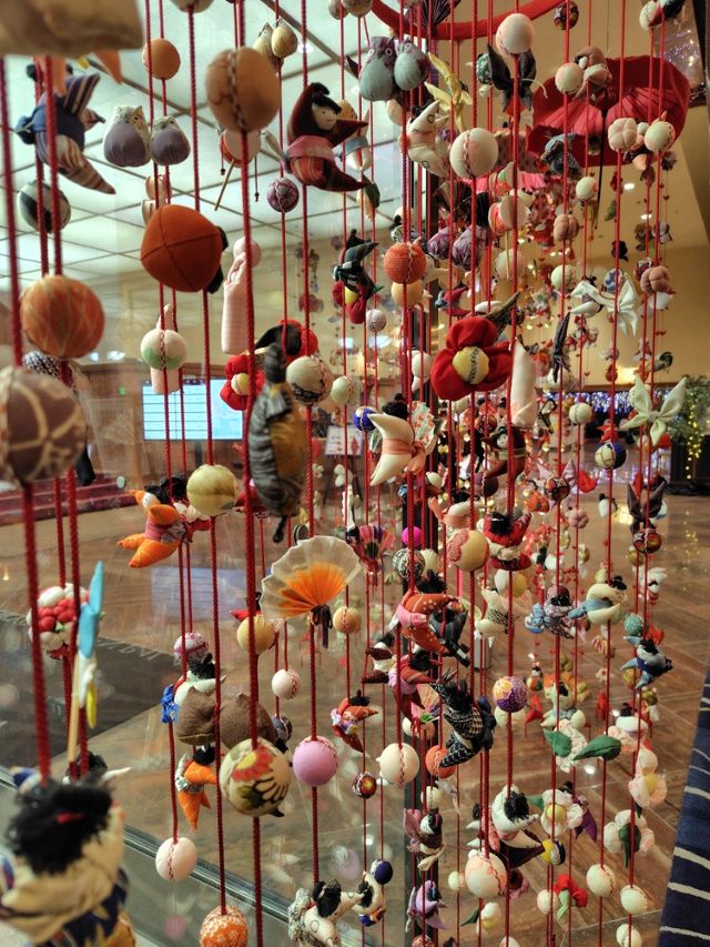 東京ガーデンパレスホテル1階ロビーで行われている「第7回春の装飾 大つるし飾り展」では、東日本大震災の復興を祈願した「つるし雛」と山形県酒田市に古くから伝わる日本三大つるし飾りのひとつ「傘福」、宮城県大崎市のきっこまざぎ教室のつるし飾り作品が2026年3月19日(木)まで展示中です。