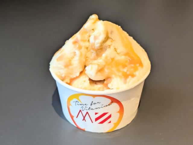 「ジェラートに比べて甘さを感じるのは砂糖の量の違いですか?」と開発した方にうかがったところ、なんと、ジェラートにミルクを入れただけだそう! ジェラートも最低限の量の砂糖しか使っていないそうです。