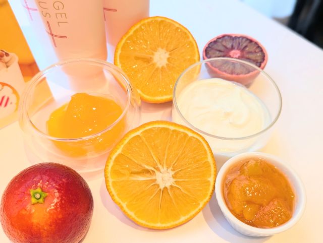 ブラッドオレンジやアプリコットにはビタミンCやβカロテン、食物繊維などが含まれていると言われています。フルーツ由来の栄養も一緒にとれるのがうれしいですね。