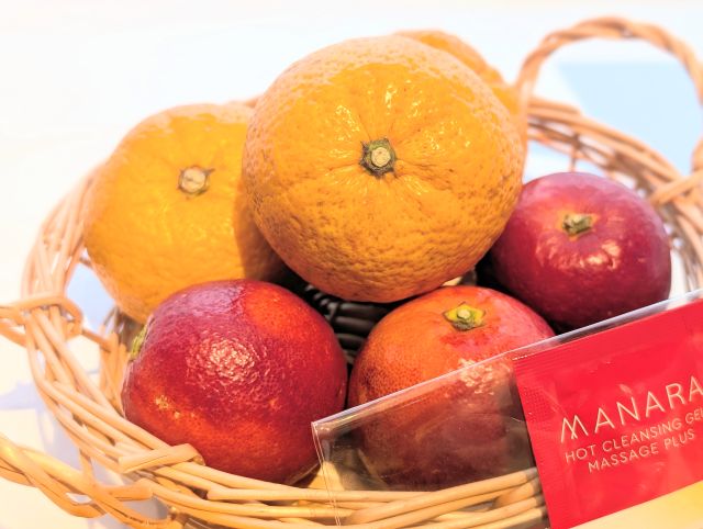 今回のコラボメニュー「じゃばらとフローズングリークヨーグルト オレンジとアプリコットのキャラメルソース」を「パンとエスプレッソと」の店舗で注文した人には、数量限定で「マナラ ホットクレンジングゲル マッサージプラス」の使い切りパウチ(1回分×3包)がプレゼントされますよ。