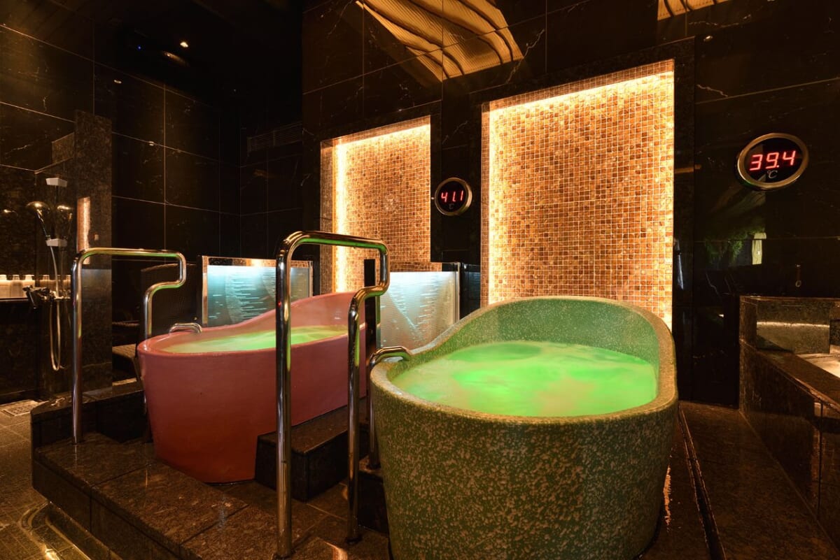 温冷交代浴を楽しめる熱湯と水風呂(女性エリア)