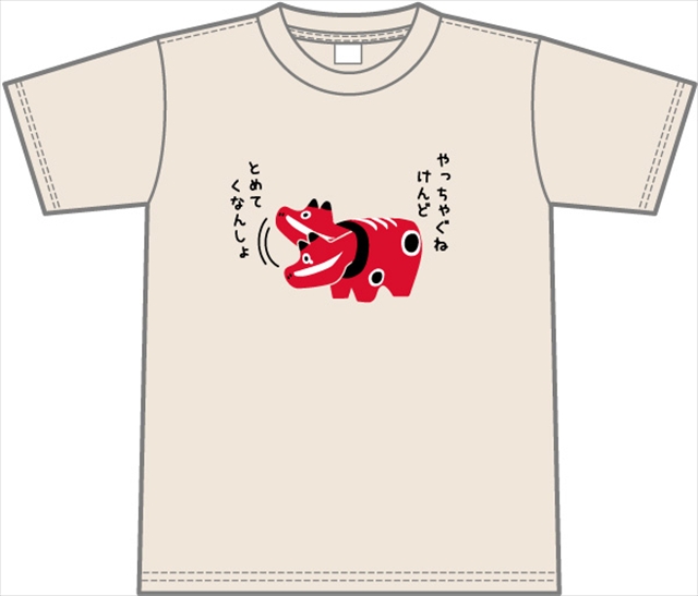 なかでも注目は「あかべこやっちゃぐねTシャツ」。赤べこのゆらゆらと首を振る姿を、“やりたくないのに頷いてしまう”日常のあるあるに重ね、「やっちゃぐね(=やりたくない)」という会津の言葉で表現したユーモラスな一枚です。