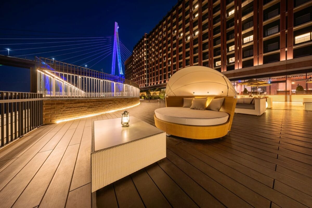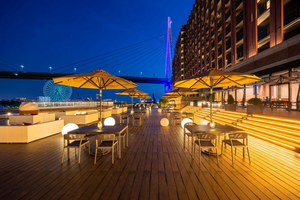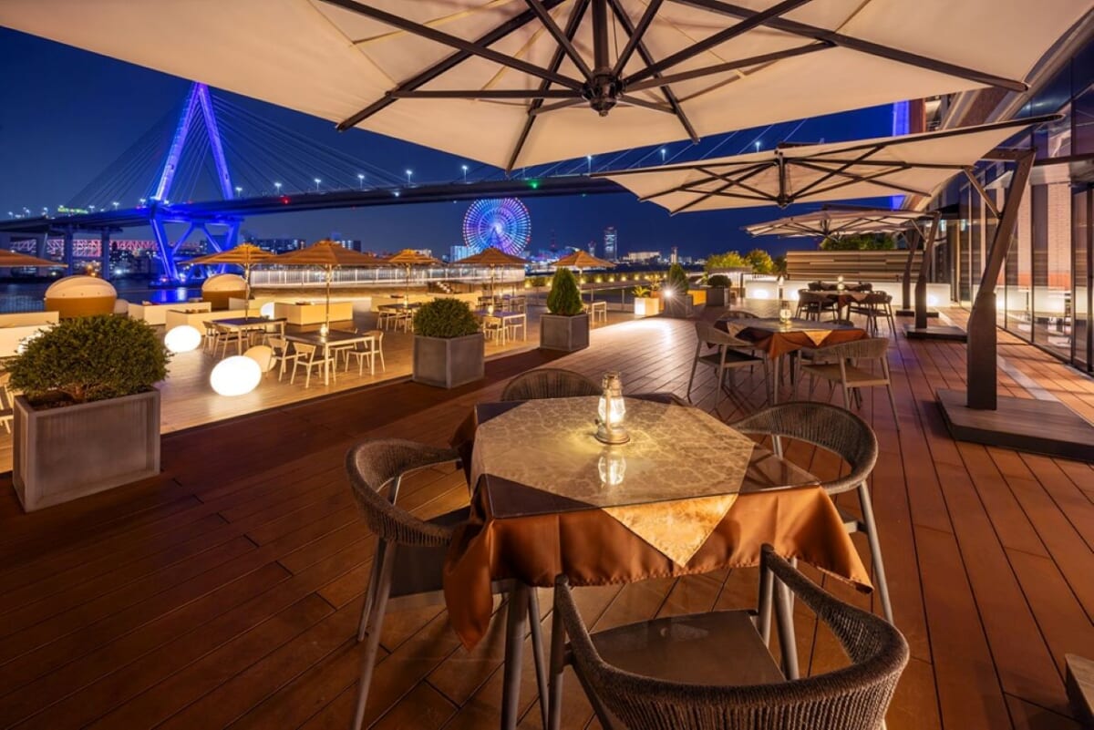水面のきらめきや観覧車の光がアクセントとなる大阪ベイエリアの夜景と共に、心地よい初夏の風に吹かれながら食事が楽しめる、プレミアムなテラス席です。大切な人との特別なひとときを過ごしてみては。